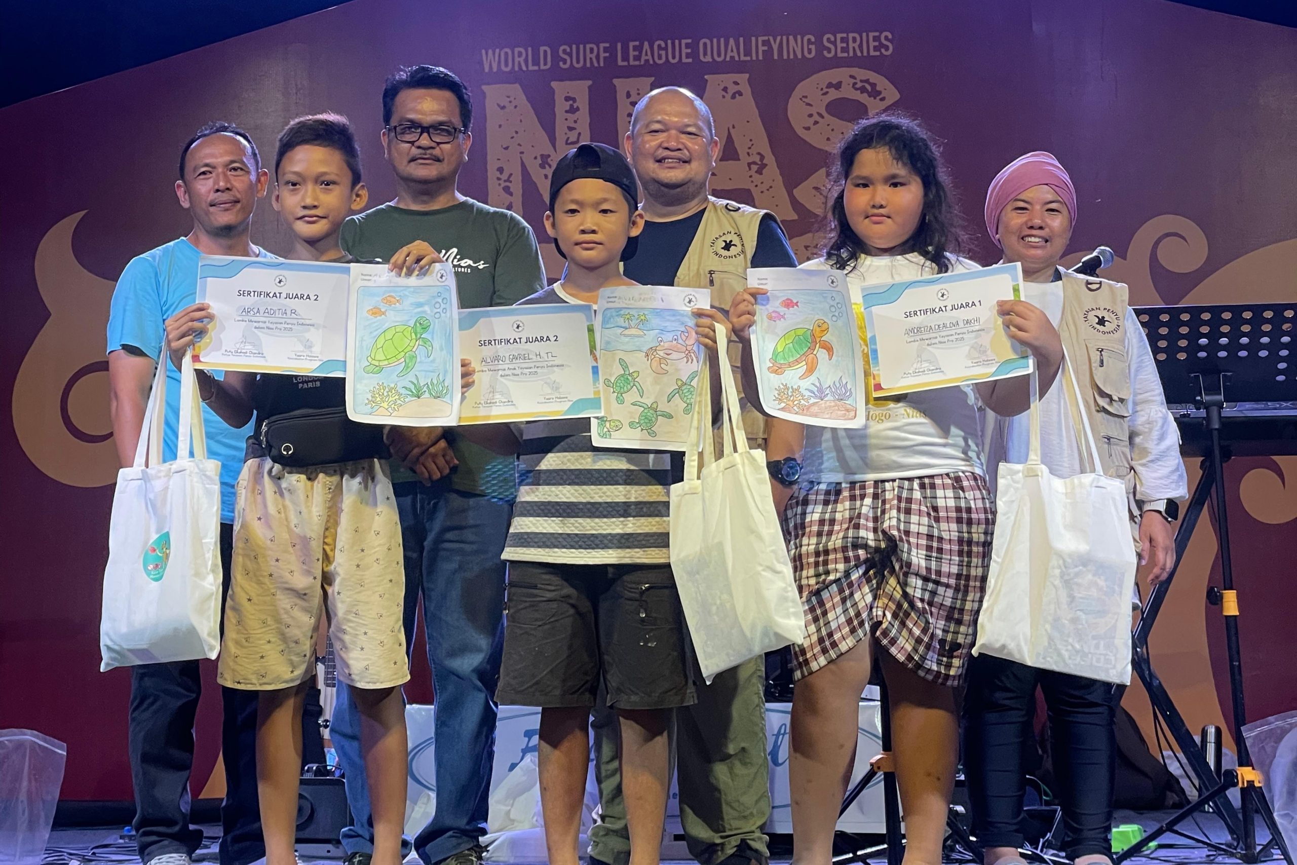 Around 60 children also took part in a coloring competition organized by Yayasan Penyu Indonesia at Nias-Pro 2025, aiming to familiarize them further with turtles and their habitats. Winners of the coloring contest—divided into two categories, children and pre-teens—were announced on the main stage during the turtle education session.